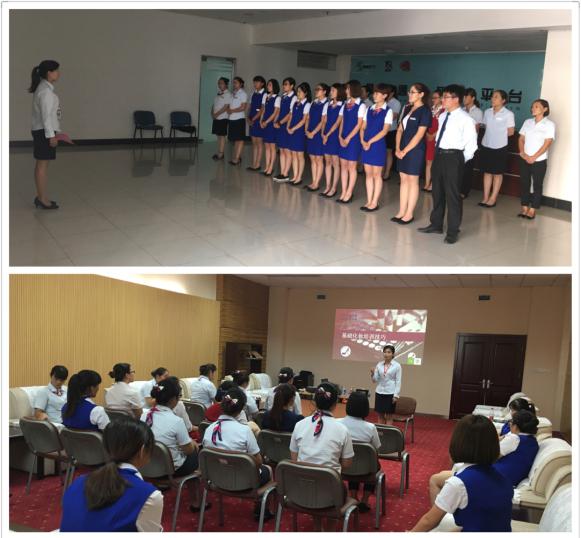 培訓講師郭娜對崗間客服人員站姿、坐姿、行姿、會務接待、指引、電話禮儀等結合實際工作流程做了實質性操作練習。