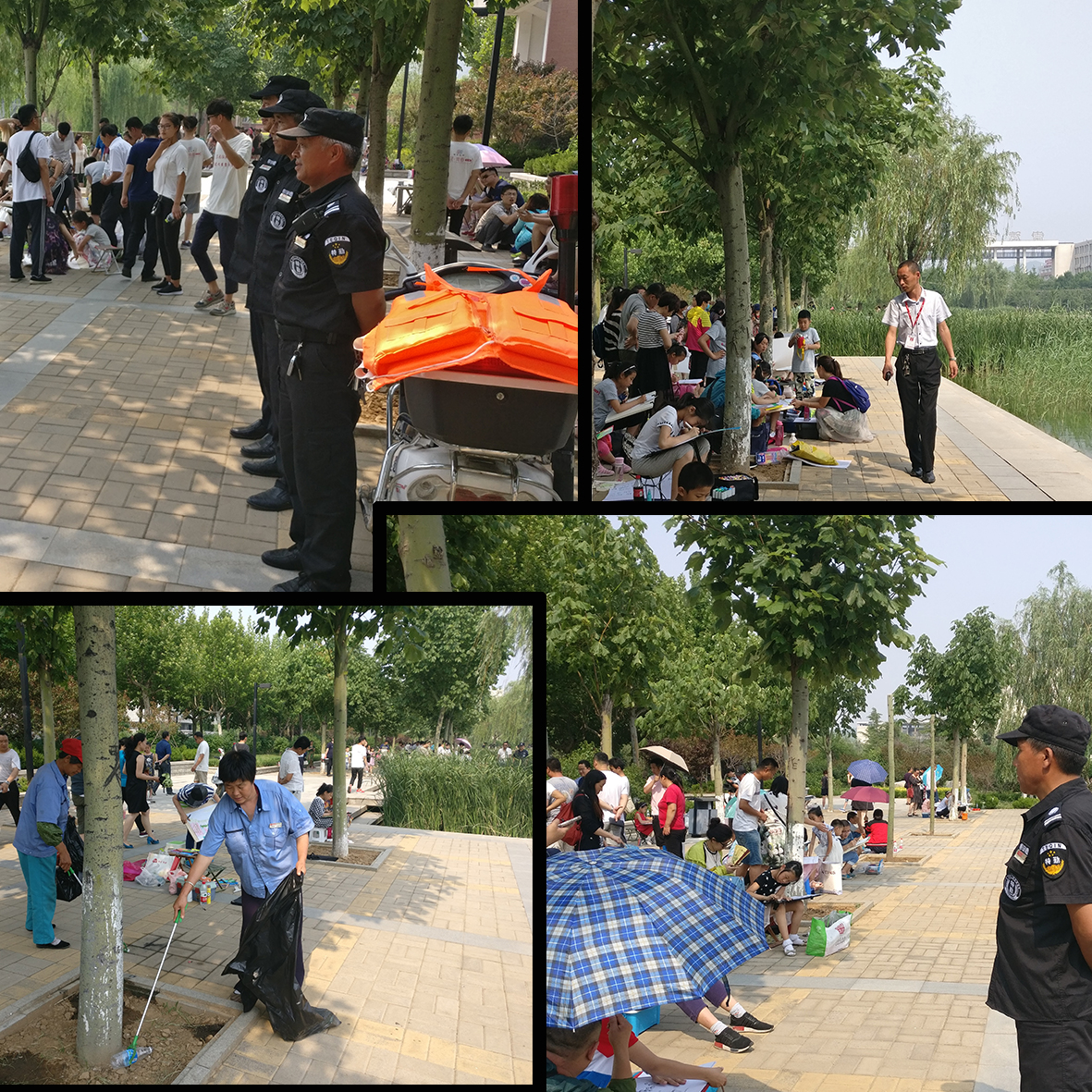 來自省內的近800名優秀的齊魯才子們在學院映秀湖畔真情書畫,比賽期間宏泰物業城建學院項目根據學院承辦方案,精心組織、細心準備,現場安靜、整潔、溫馨、有序,為考生創作書面作品營造良好的環境;針對年齡較小的考生,制定有針對性的保障方案,加強湖邊的安保值勤,確保比賽的安全進行。