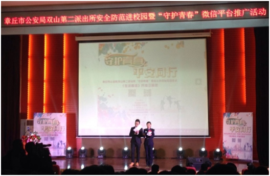 2015年12月31日上午10:00,在濟南工程職業技術學院明道樓報告廳舉行了章丘市公安局雙山第二派出所安全防范進行校園暨“守護青春”微信公眾平臺推廣活動。本次活動由章丘市公安局、章丘市雙山第二派出所、濟南電視臺生活頻道、濟南工程職業技術學院聯合舉辦,活動參加人員來自章丘市公安系統相關部門領導、高教辦領導、十一所高校領導及學生代表等,活動人數約四百人左右。